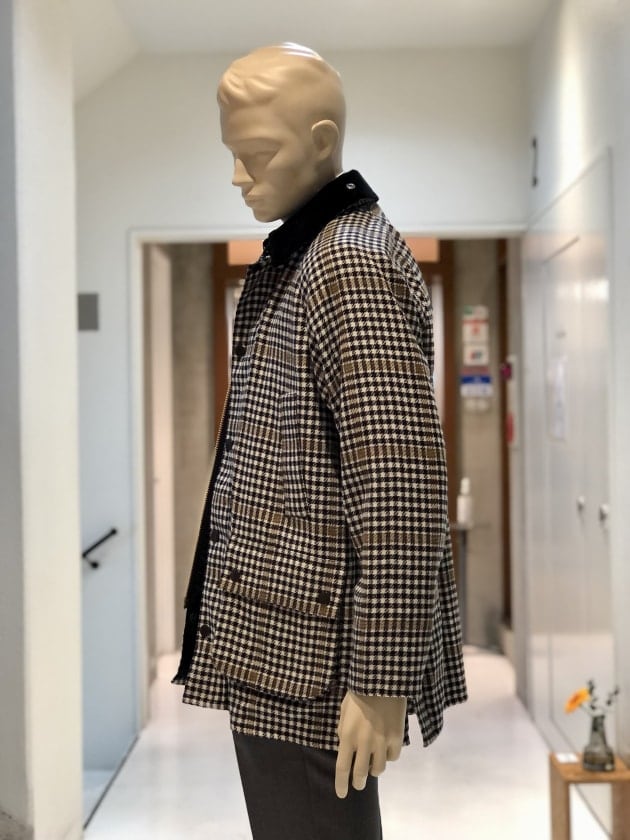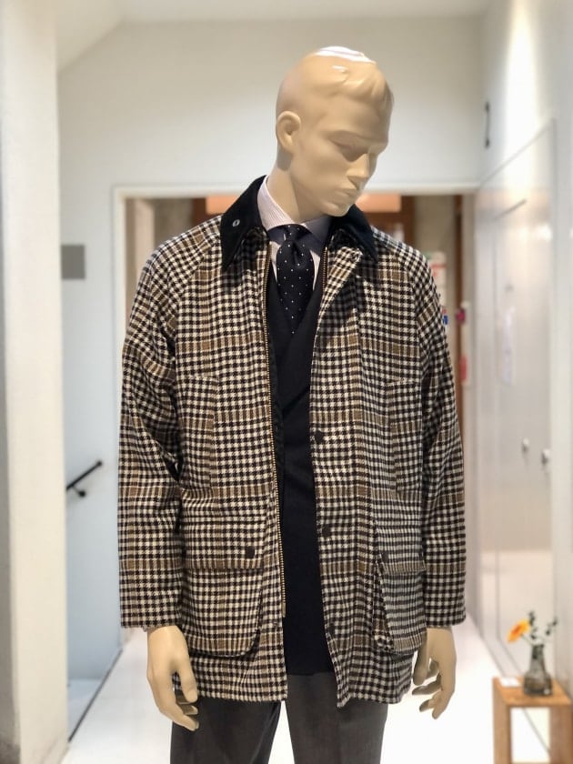 毎冬ご好評いただいている、英国MALLALIEUS(マラリウス)社の生地を使用した〈Barbour(バブアー)〉の別注BEDALE-F(ビデイルF)ハウンドトゥース+ペーンジャケットです。