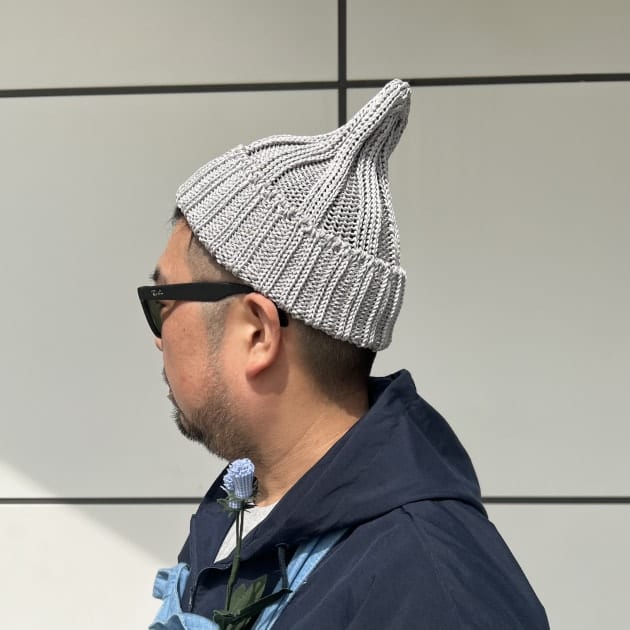 ざっくりとした編み地なので風通しも良く、これからの季節にピッタリです。一度被ったら、やみつきになる快適さを是非!