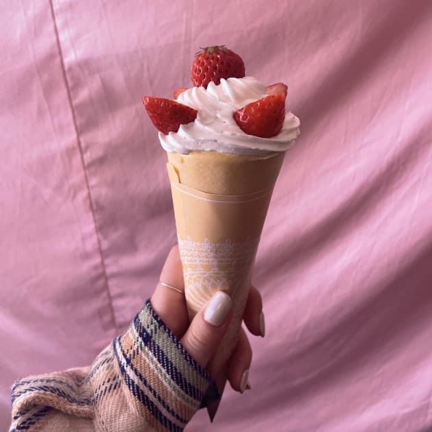 春らしい写真を探したのですが、あまりなかったので、最近食べたいちごのクレープです。