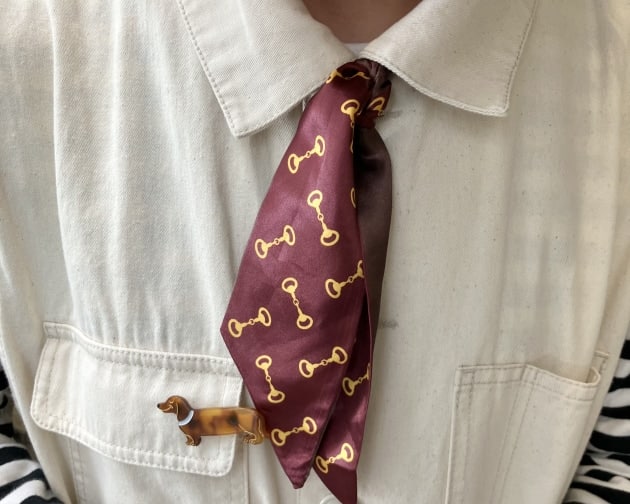 襟付きなので、こんな風にタイを巻くが出来ます。