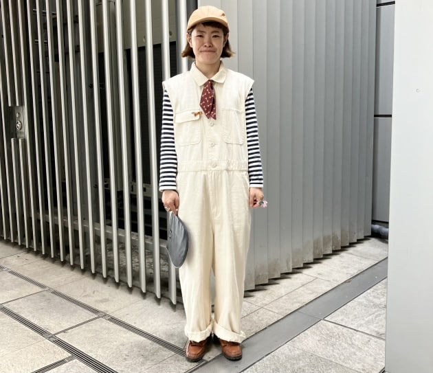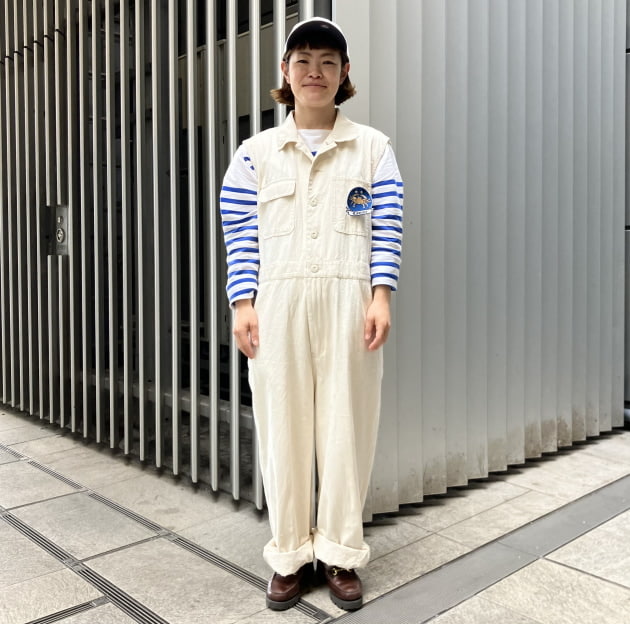 オールインワンもジャケットもワークウェアが元になっているので相性も良く、重ねて着ても動きやすいのが嬉しいポイントです。