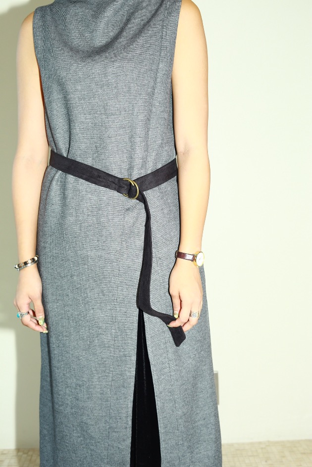 ワンピースの付属にはベルトが付いているので、ウエストにアクセントをつけることもできます。