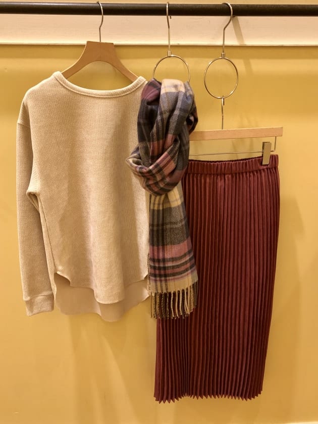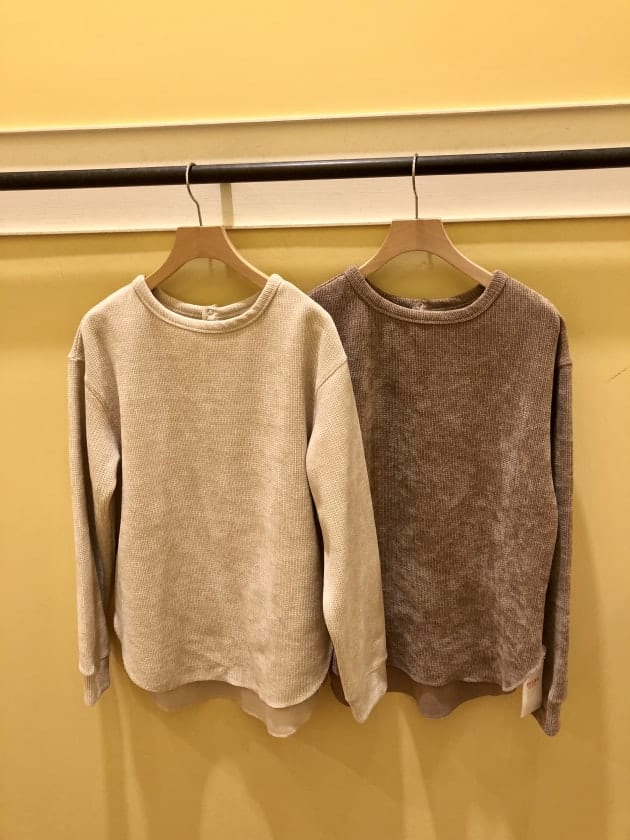 着回しも抜群で起毛感のあるワッフル素材のプルオーバー♪プリーツスカートからワイドパンツまで様々なアイテムとの相性バッチリです☆
