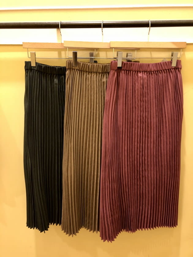 冬に欠かせないスエードスカート☆プリーツがアクセントにもなり歩くたびに揺れ女性らしさを引き立てる、まさに上品さも兼ね備えたアイテムです♪
