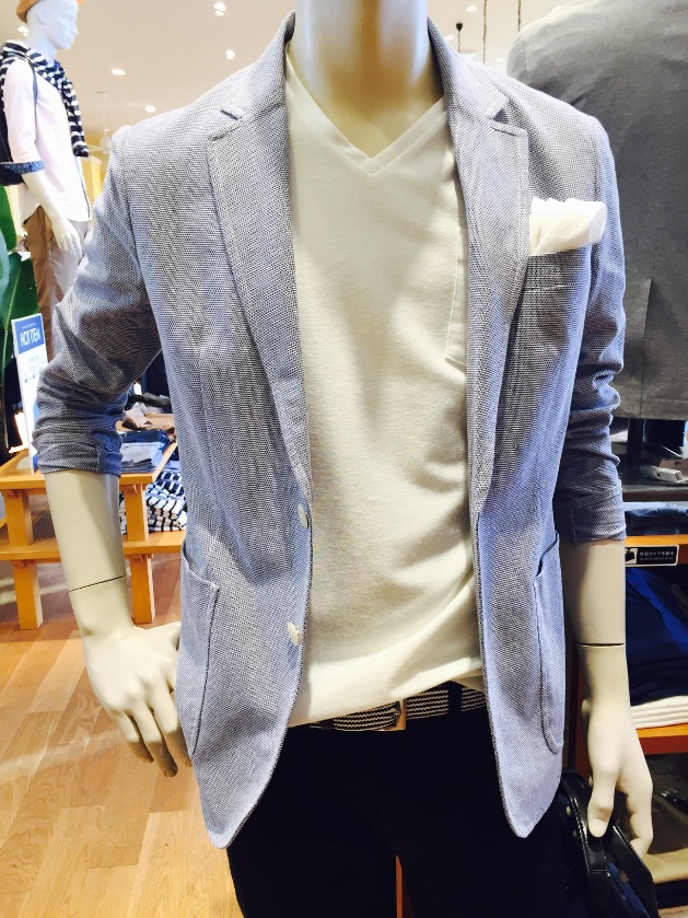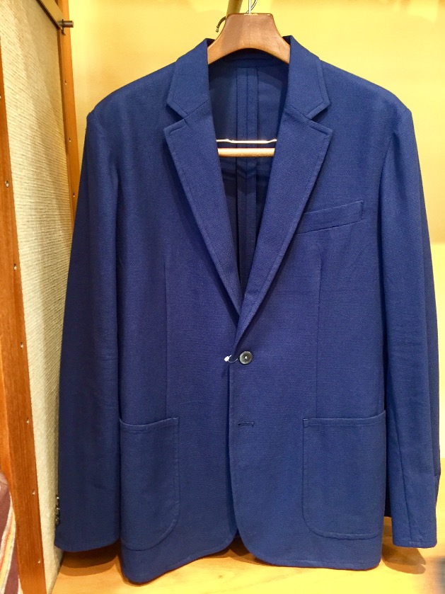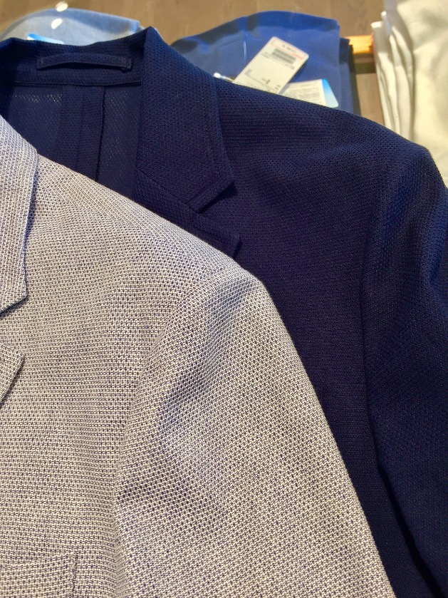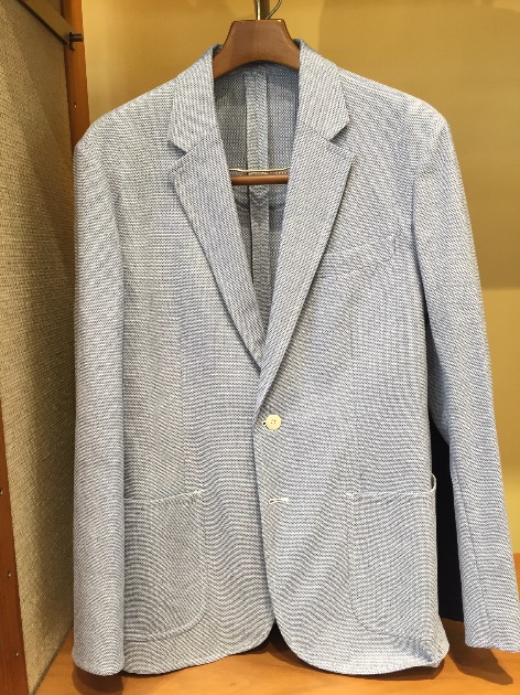 コットン100%のカラミ素材ジャケットになります。シャツ感覚で着用出来、真夏まで長く着用頂けます。