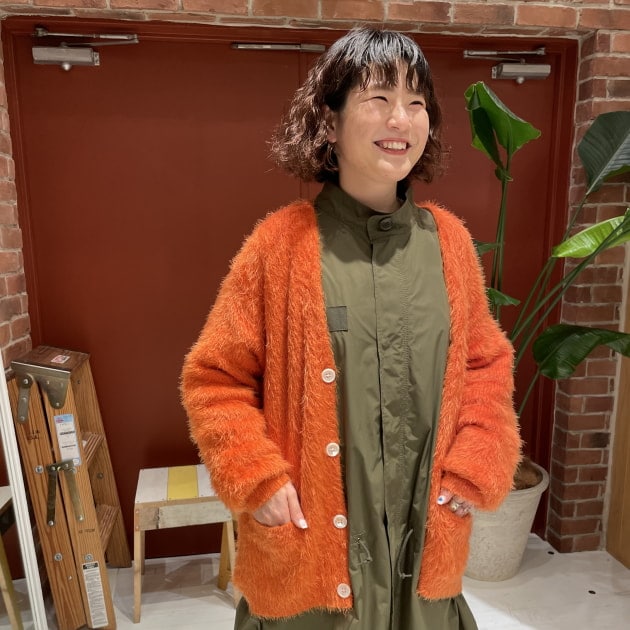 えのちゃんはアウターの上からカーディガンを羽織ってます。
