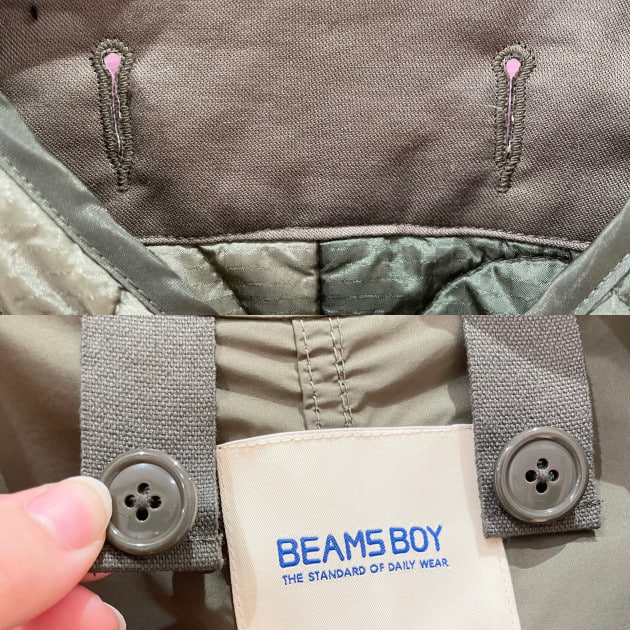 首もとにはボタンがついているので、こちらのライナーを付けると今の時期でも大丈夫なアウターに早変わりします!!