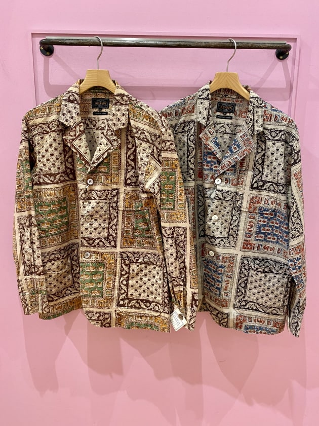 春夏では開襟の半袖シャツでお馴染みのブロックプリントのシャツジャケットが登場しました。