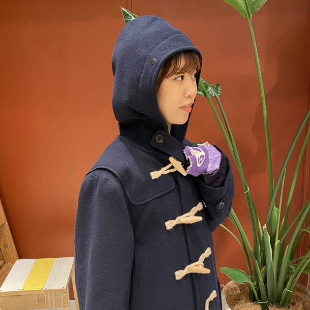 元々は海軍で防寒着として着られていたダッフルコート。フードも大きめで、しっかりと防寒出来ます◎