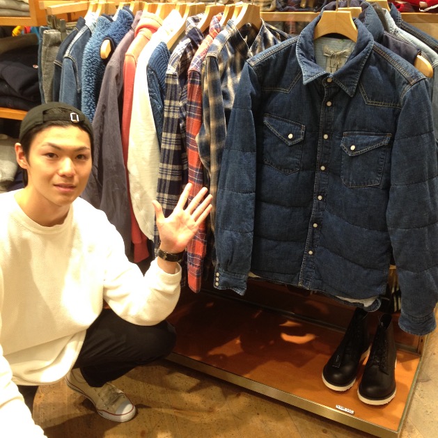 スタッフ春山は、ニューモデルのダウンシャツジャケットが気になるよう。