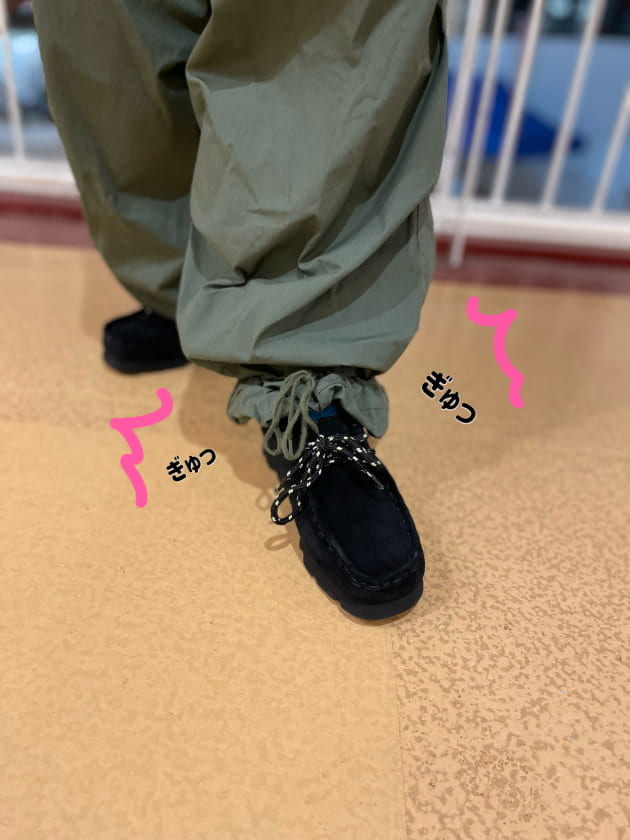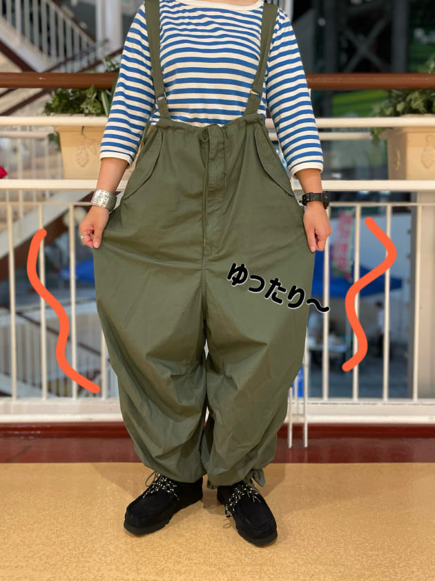 裾のドローコードを絞って折り曲げると小柄な方にも余裕で着ていただけますよ♡