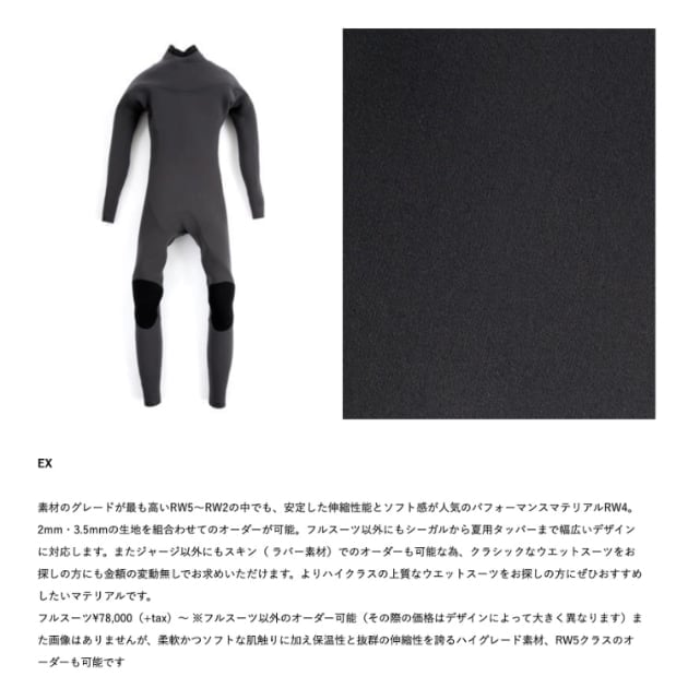 通常ラインナップのジャージ素材(同金額でスキンへ変更可能)のオーダーもお受け致します。冬のWETSUITSだけでは無く、夏用WETSUITSのオーダーも受け付けておりますので、その際は遠慮無くスタッフまでお申しつけください。