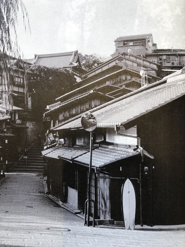 そしてここにも、美しい京都の街並みに佇む1本のサーフボードを発見。