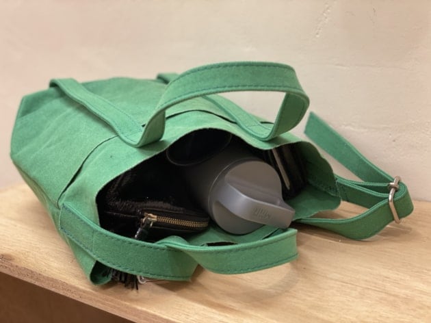 MiiRの20ozボトルが縦に入る高さがあり、大きめのポーチを入れてもまだお弁当も持ち運べそうな余裕があります!