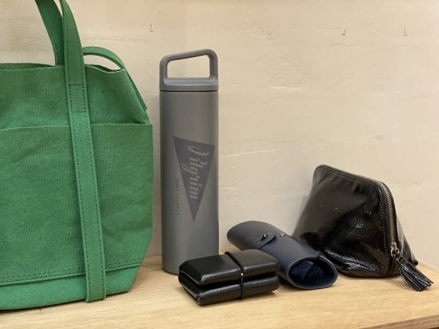 今回、ボトルとお財布、ポーチやサングラスなど、普段持ち歩くアイテムを詰めてみたのがこちら。