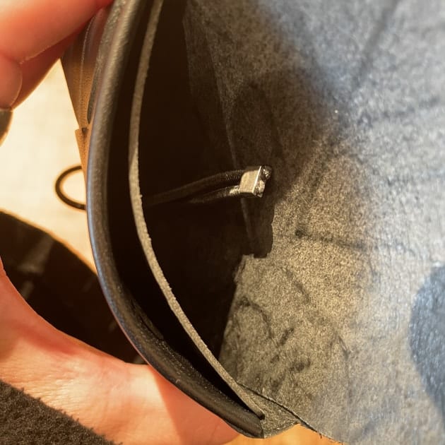 少しわかりづらいですが、カードポケットの底からゴム紐が取り替えることができます。万が一切れてしまっても修理での交換が可能です。お持ちのヘアゴムなどでも対応できそうです。