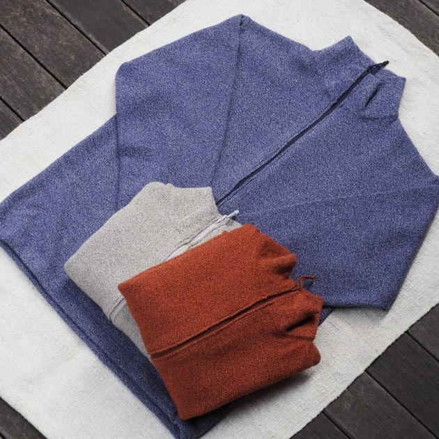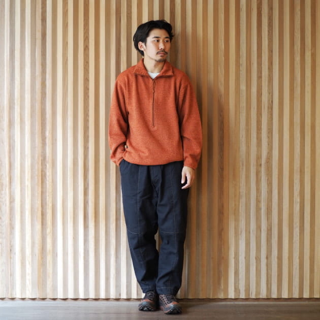 こちらのハーフジップ、ウールとオクタ(R)の混紡となっております。