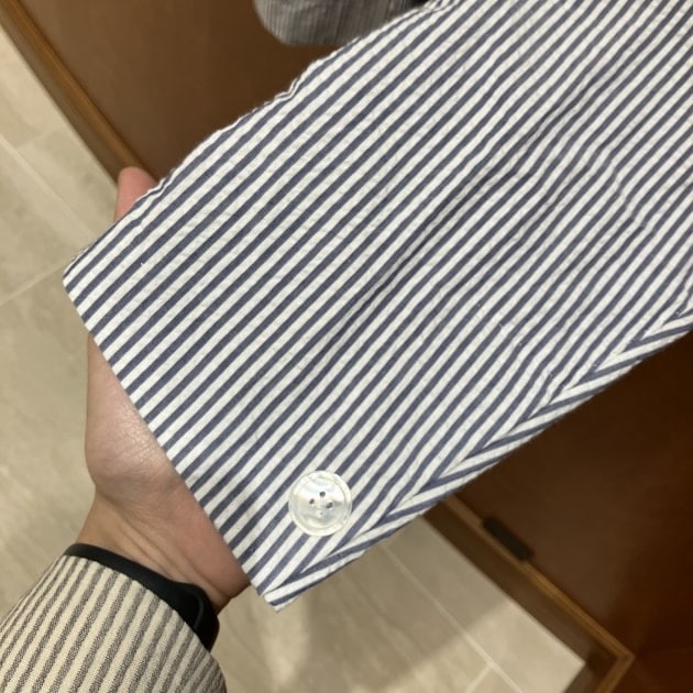 袖口には一つボタンが既に仕上がっており、すぐにお持ち帰り可能です。