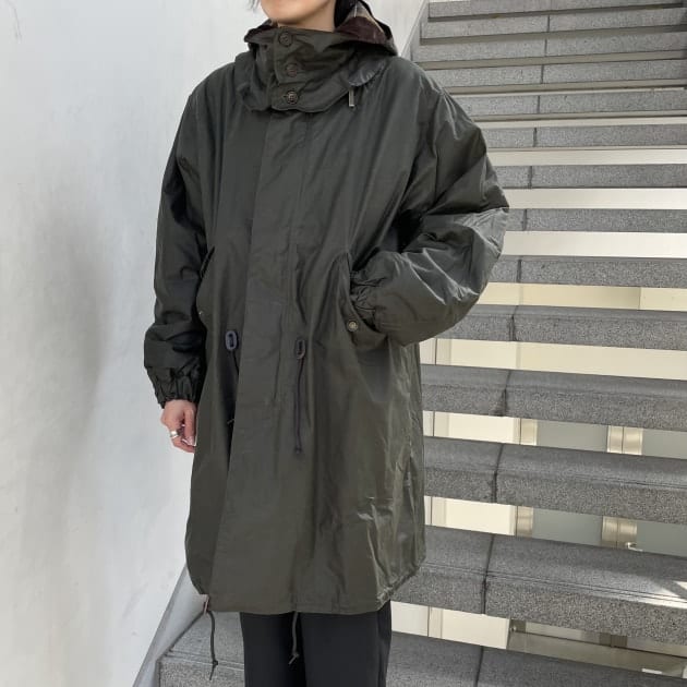 細部まで振り切ったミリタリーに心くすぐられますね。端っこで‥フードを被ります。こちらもSサイズです