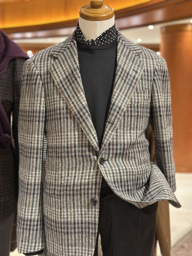 多色使いのMAGEE社のツイード生地のチェックのジャケット。