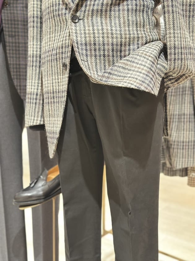 今回在庫の兼ね合いでコットンのテーパードの物ですが、ウール素材でワイドな物も良いと思います!
