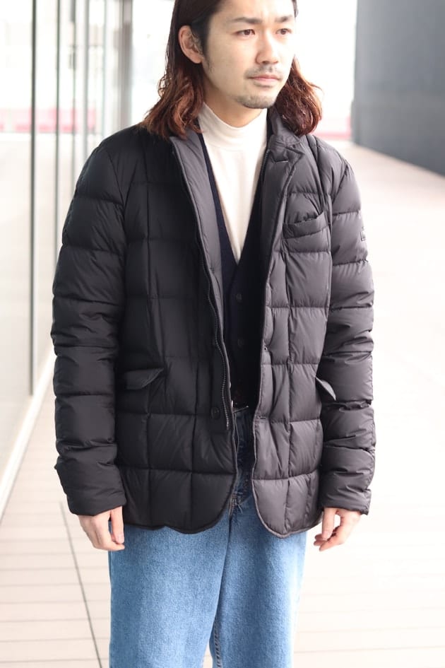 ダウンジャケットですが、テーラードジャケットのデザインになったアイテムです。
