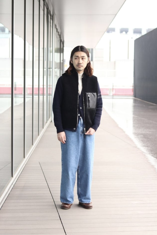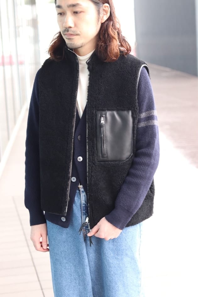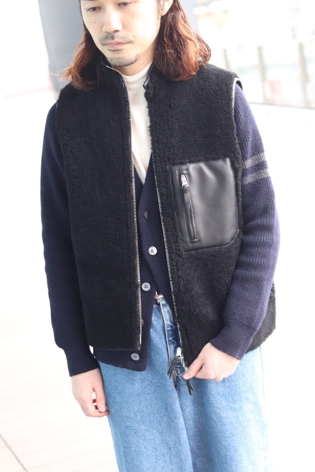 ブランドでは定番のムートンベストをリバーシブル仕様に別注しております。