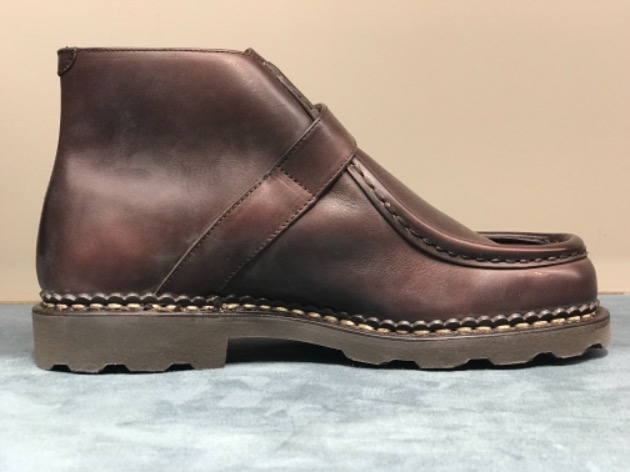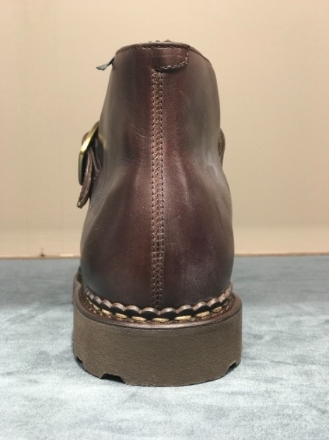 伝統的なチロリアンシューズのモデルで有名なMICHAEL(ミカエル)と同じ木型を使い、ストラップブーツにした別注モデルです。