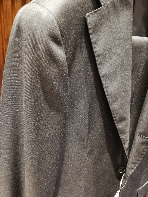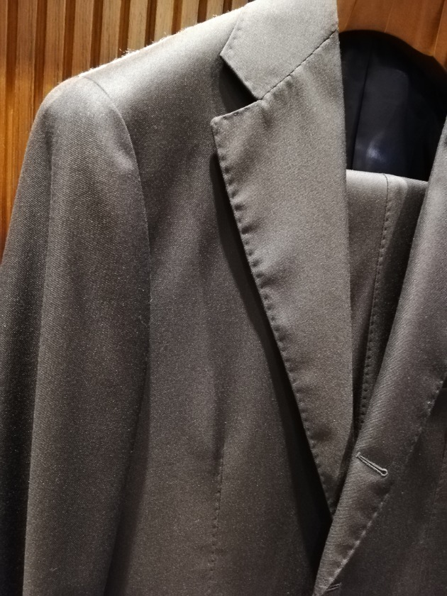 ラペルのコバステッチも雰囲気があり、高級感増しますね。