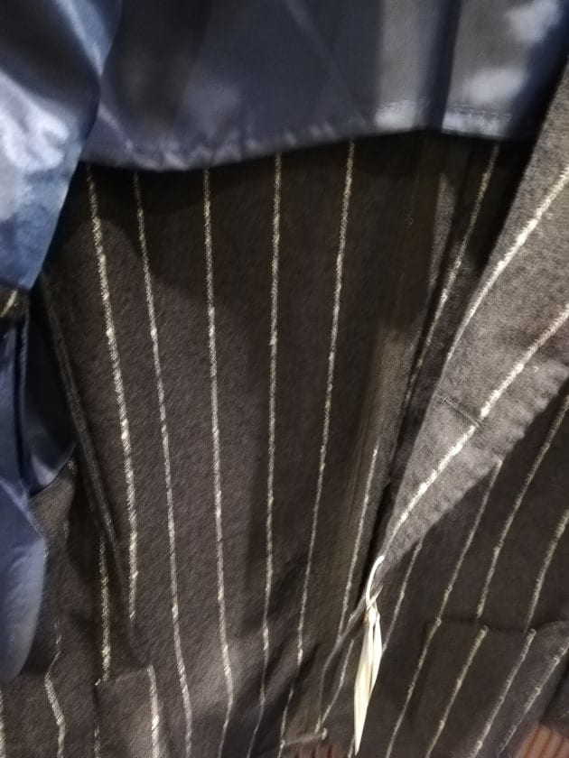 ネイビー地にグレーのストライプはそこまで派手さはなく、着回し易いかと。