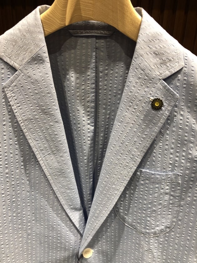 ダークトーンですが、シアサッカー生地の持つ清涼感で、決して暑苦しく見えないですよ。