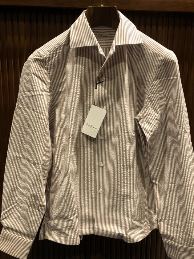 ERRICO FORMICOLA シアサッカー オープンカラーシャツ