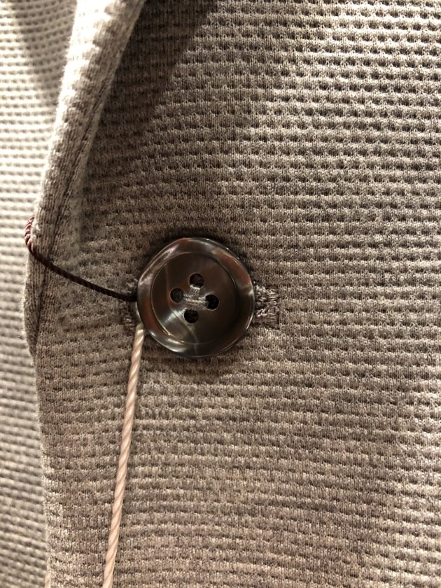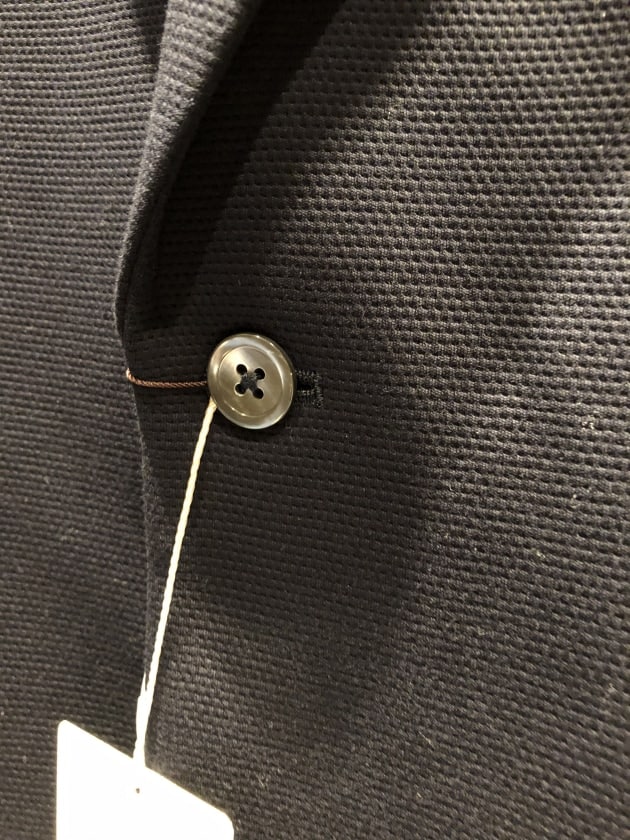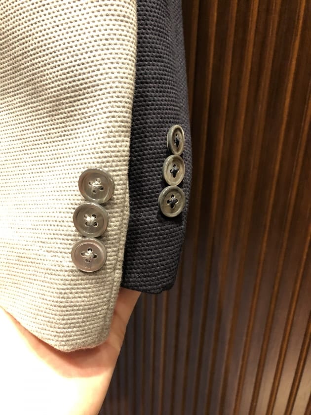 ボタンも小さめながら立体感と高級感のあるものを使用。