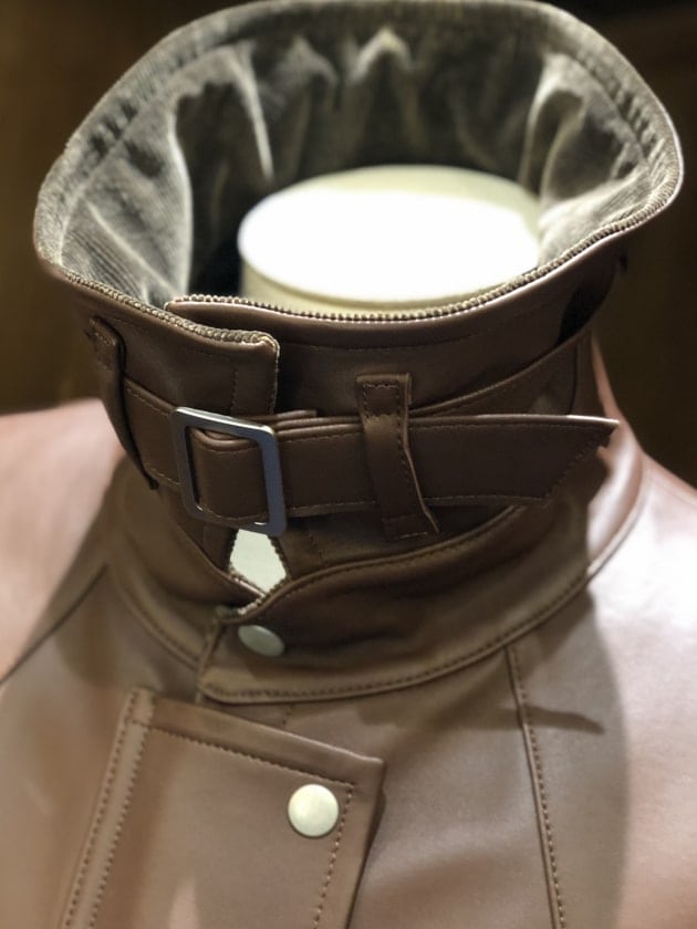 襟はコーデュロイ素材かつチンベルトがあるので、この様に留めると防寒性もございます。