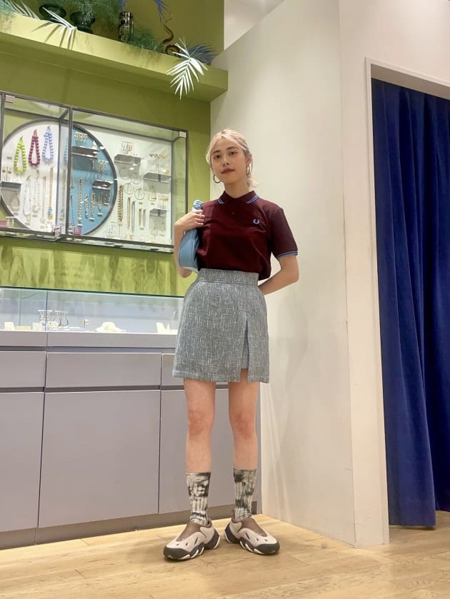 私は、ミニスカートを履いて、あえてシンプルでスポーティーな合わせにしてみました〜!