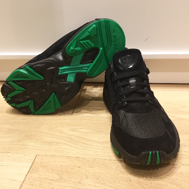 オールブラックでソールには<adidas originals>を象徴するグリーンを差し色に、ストリート×モードを融合した一足になっております!!