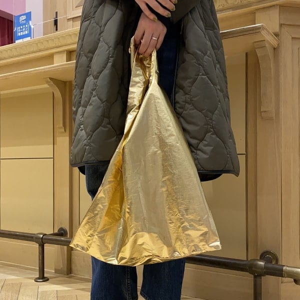 エコバックの中でも、大きめのサイズ感なのでいつも荷物が多い…という方でも安心して使えますし、目を惹くメタリックカラーなので、アクセントとしても合わせて頂けます。