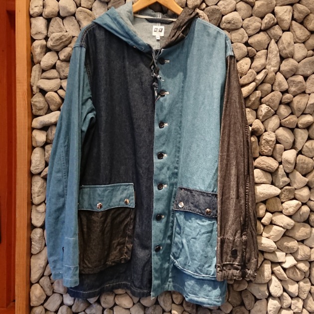商品名の通りデニム素材のクレイジーパターンのパーカーです。