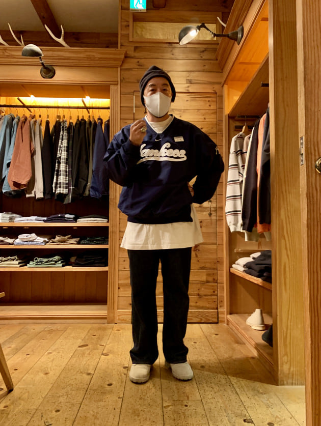 こちらのBOSS中尾のスタイリング。ビームスきってのアメリカ好き、4大プロスポーツに精通するBOSS中尾らしく、