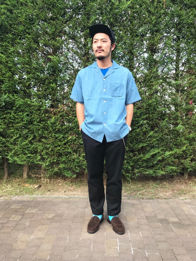 こちらはインディゴのオープンカラーシャツです!色はサックスとネイビーでどちらも合わせやすいです!1枚で着たり中にボーダーなどのカットソーと合わせたりと色々なコーディネートを楽しんで頂けます!是非いかがでしょうか!