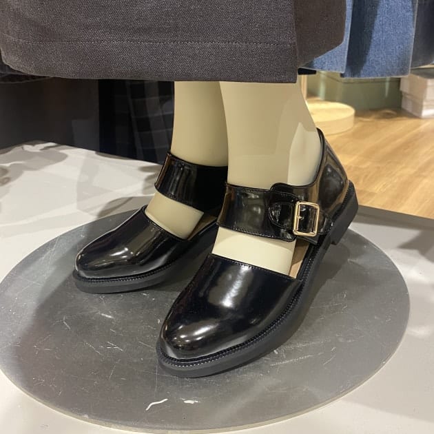 ころんと丸いつま先がキュートなメリージェーンパンプス。ハイソックス+厚手のプリーツスカートでクラシカルに合わせたいです。