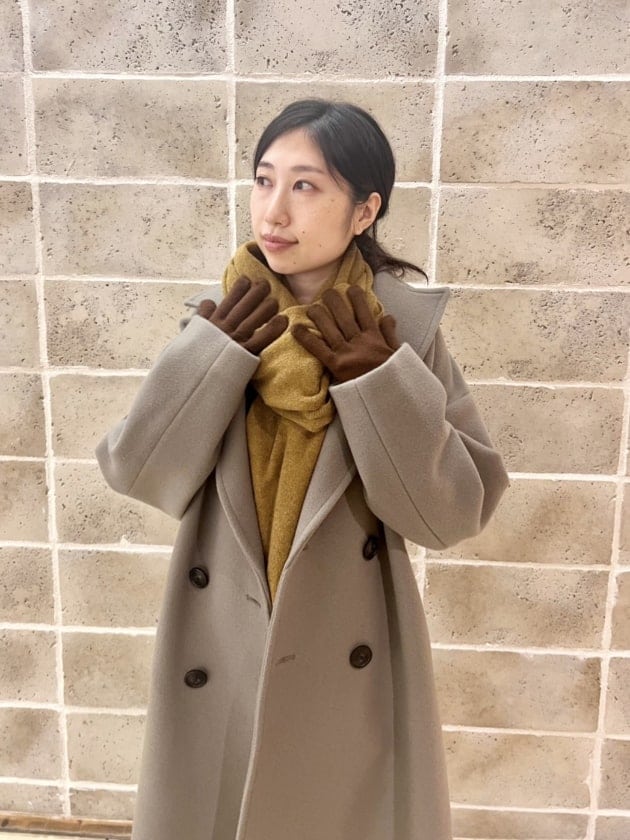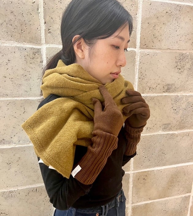 ストールもグローブもコーディネートの邪魔をしない優しいカラーリングなので、ぜひアクセントにいかがでしょうか。