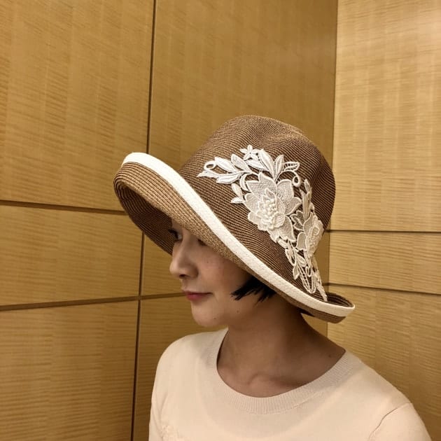 ブリムの折り加減でデザインの
