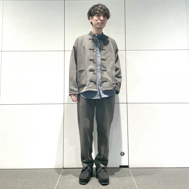 シンプルなコーディネートですが、チャイナボタンが良いアクセントになっていますね◎