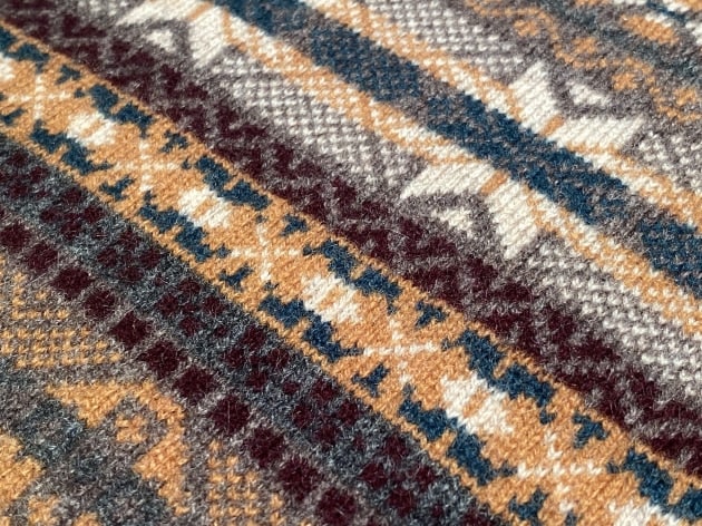 諸説、フェア島の伝統が詰まっているというフェアアイルのパターンは色々は表情を演出しております。