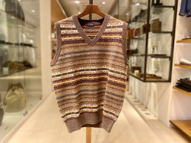昨年大人気だったカシミアフェアアイルニットベストが配色を変更して再リリースです。