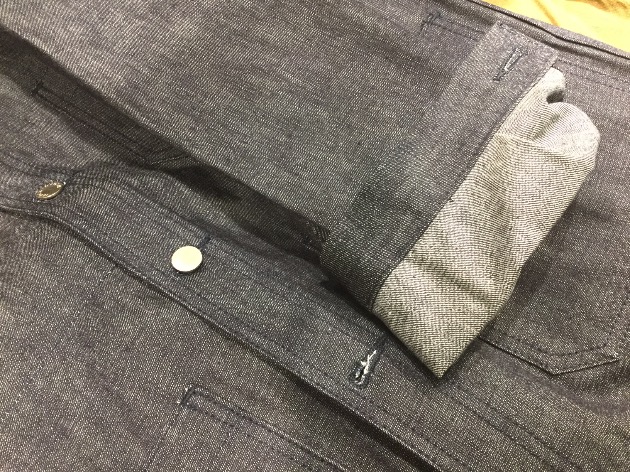 生地感が非常に良く、日本製で最高品質のインディゴ染めデニムを使用しております。青さを押さえた生地の色目は、より都会的な印象を与えます。