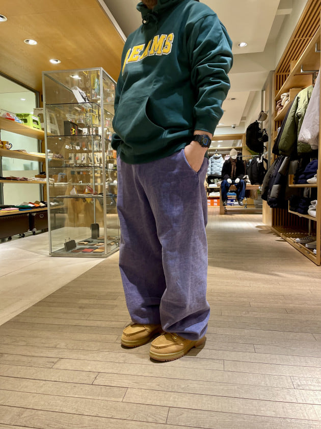 パンツとシューズには『リアルノグットスタイル』でもお馴染みのフェードワイドスウェットパンツと別注のTimberlandをチョイスしました。
