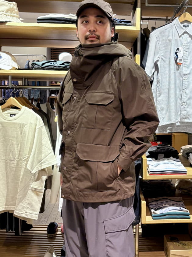 定番の65/35ベイヘッドクロスを使用したクラシックな表情のマウンテンパーカとなっており、なんといってもブラウンのカラーリングがGOODですね!