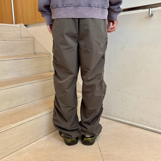 トップスには、ウォッシュ加工で味わいをプラスしたBIG WAFFLE、パンツには撥水性と軽さが魅力のイージーパンツをセレクト。